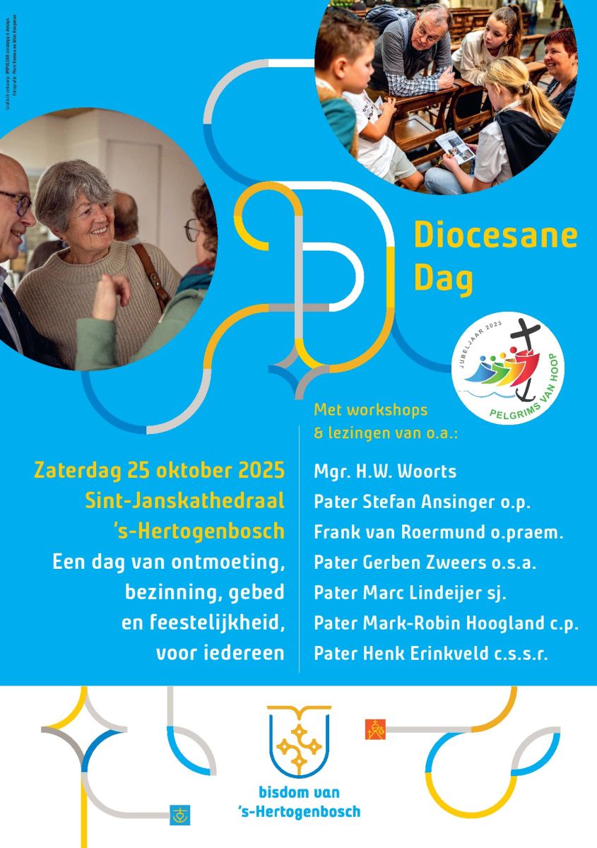 In het kader van het Heilig Jaar or­ga­ni­seert het bisdom van ’s-Hertogen­bosch op zater­dag 25 ok­to­ber 2025 een fees­te­lij­ke Dio­ce­sane Dag. Niet alleen in Rome, maar ook in ons eigen bisdom willen we dit bij­zon­dere jaar samen vieren. Het thema van de dag sluit aan bij het thema van het Heilig Jaar: Pelgrims van hoop.